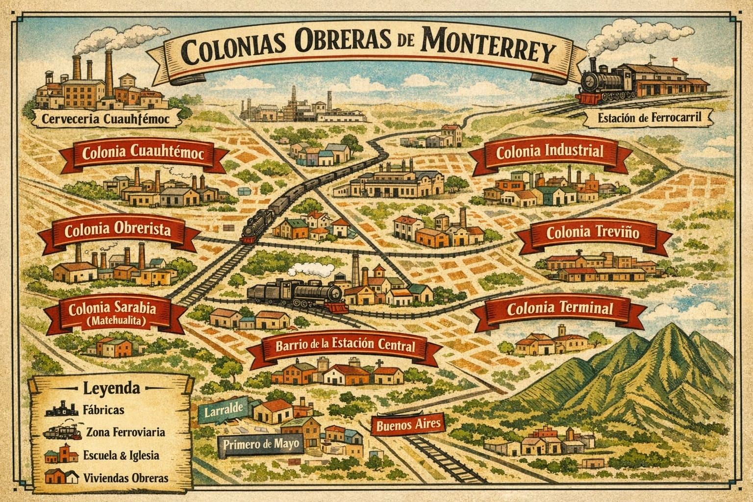 En Monterrey, varias colonias surgieron directamente vinculadas al desarrollo industrial entre finales del siglo XIX y mediados del XX. Muchas de ellas fueron colonias obreras, creadas o impulsadas por fábricas para alojar a sus trabajadores cerca de los centros de producción.